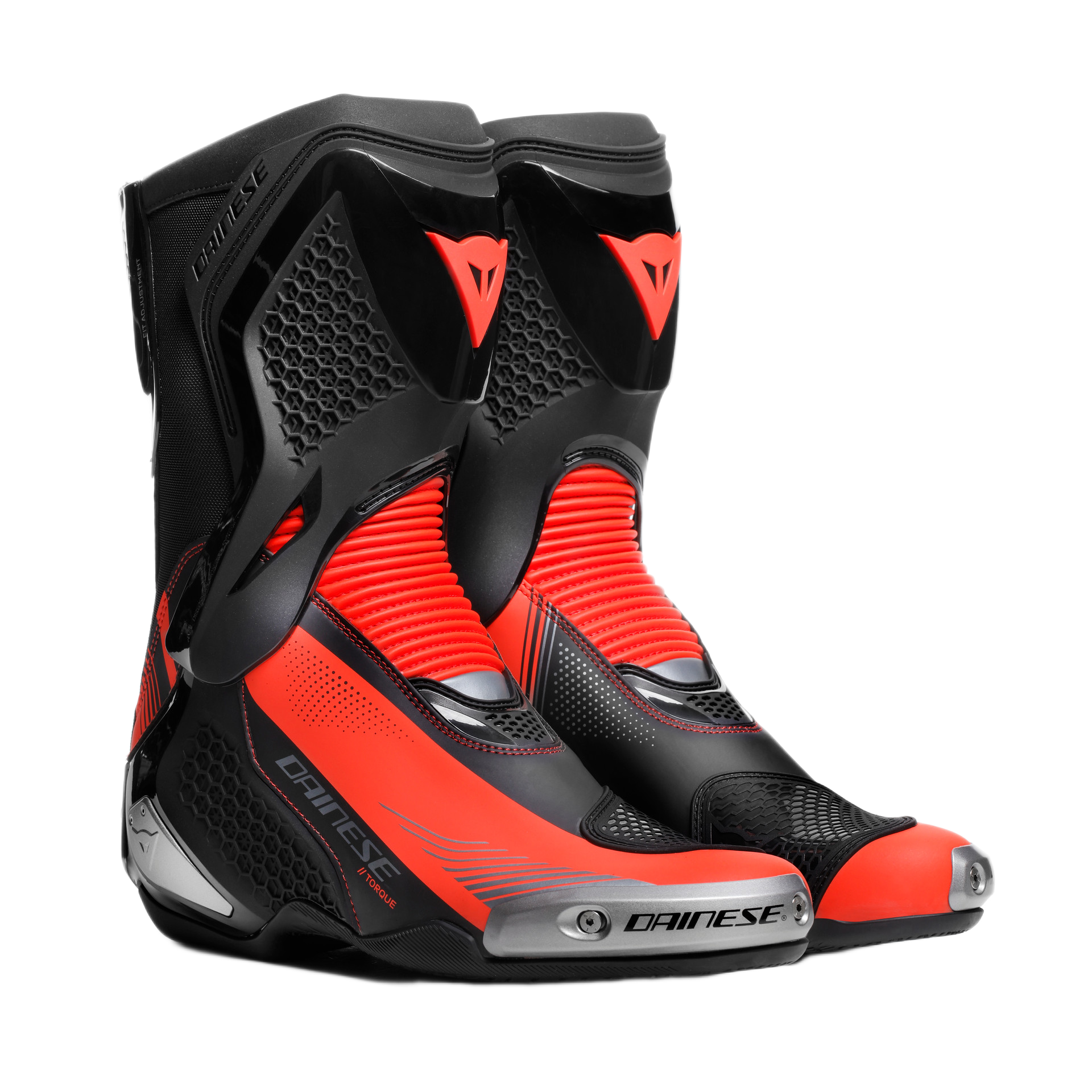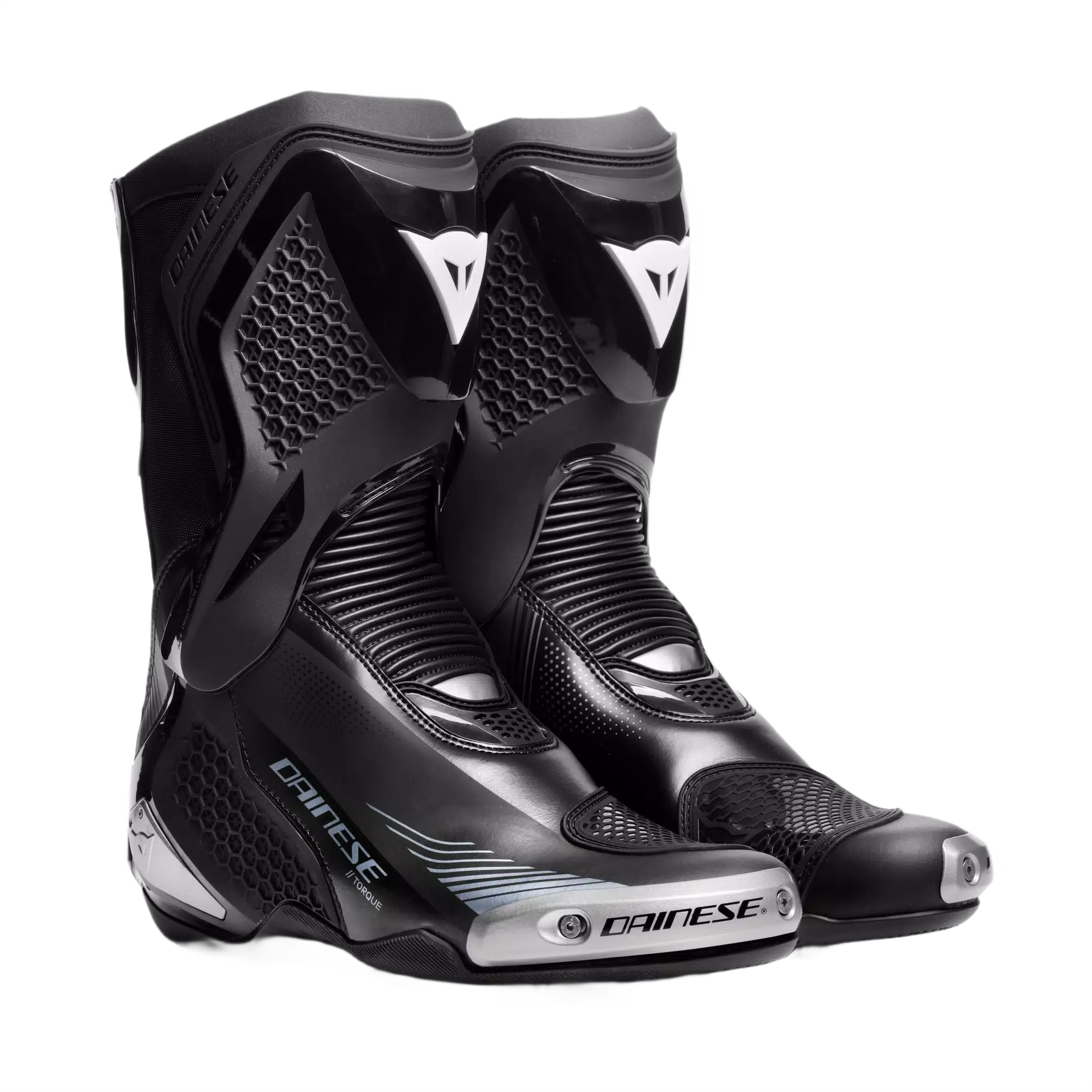 Buty DAINESE Torque 4 – Nowe buty wyścigowe i szosowe z mikrofibry i materiału D-Stone™ z systemem D-Axial z TPU i wymiennymi suwakami magnezowymi.